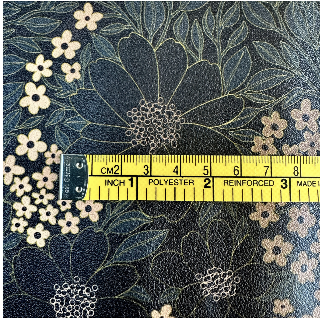 Totally gorgeous print PU, featuring a stylish Oriental floral theme print. Note the fabric does not use metallic ink. So beautiful and sew easy to sew with! This PU fabric is perfect for beginners (trust me) and seasoned stitchers alike. Use a 90 weight universal needle and stitch length 3. Great for pencil cases, make up bags, totes, bag bases and more.